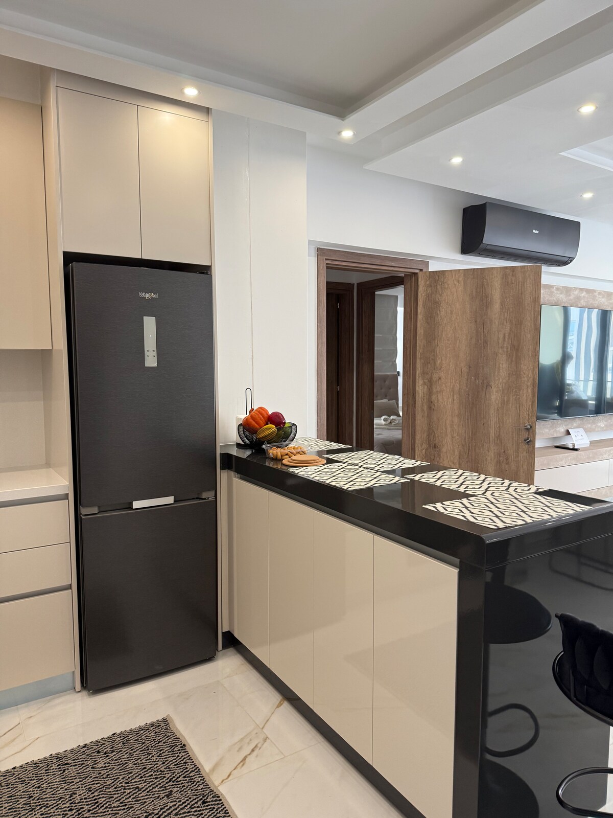 Apartamento contemporáneo de 2 dormitorios a 1,6 km del mar en Linopetra, Limasol. ¡Tienes una terraza privada en la azotea con jacuzzi! La azotea está equipada con barbacoa, fogata, lavabo, salón y comedor con vistas a la ciudad. Hay 2 dormitorios dobles, 2 baños, cocina moderna totalmente equipada con comedor, balcón cubierto, INCREÍBLE sofá con mecanismo de extensión. Disfruta de Nespresso, la Smart TV. Tenga en cuenta que hay obras en curso al otro lado de la carretera, que pueden comenzar temprano debido al calor.