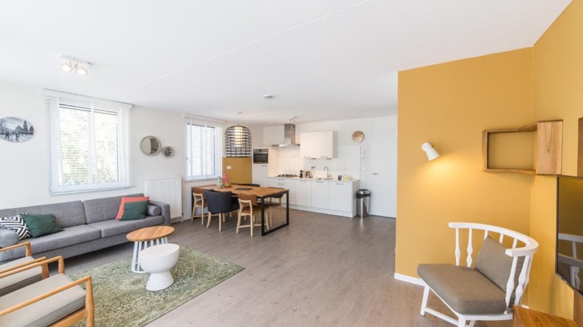 Bungalow privado (75 m2) en una zona boscosa con plaza de aparcamiento gratuita. Atractiva y amplia sala de estar con TV y wifi gratuito, cocina totalmente equipada con nevera, Nespresso, fogones y todos los utensilios de cocina. Baño con ducha de lujo y aseo separado, dormitorio con cama de matrimonio. Hay una sauna beneficiosa (por una pequeña tarifa). Muy adecuado para vacaciones, pero también para el viajero de negocios. Centro de Deurne a 20 minutos a pie. Estación NS a 3,2 km.