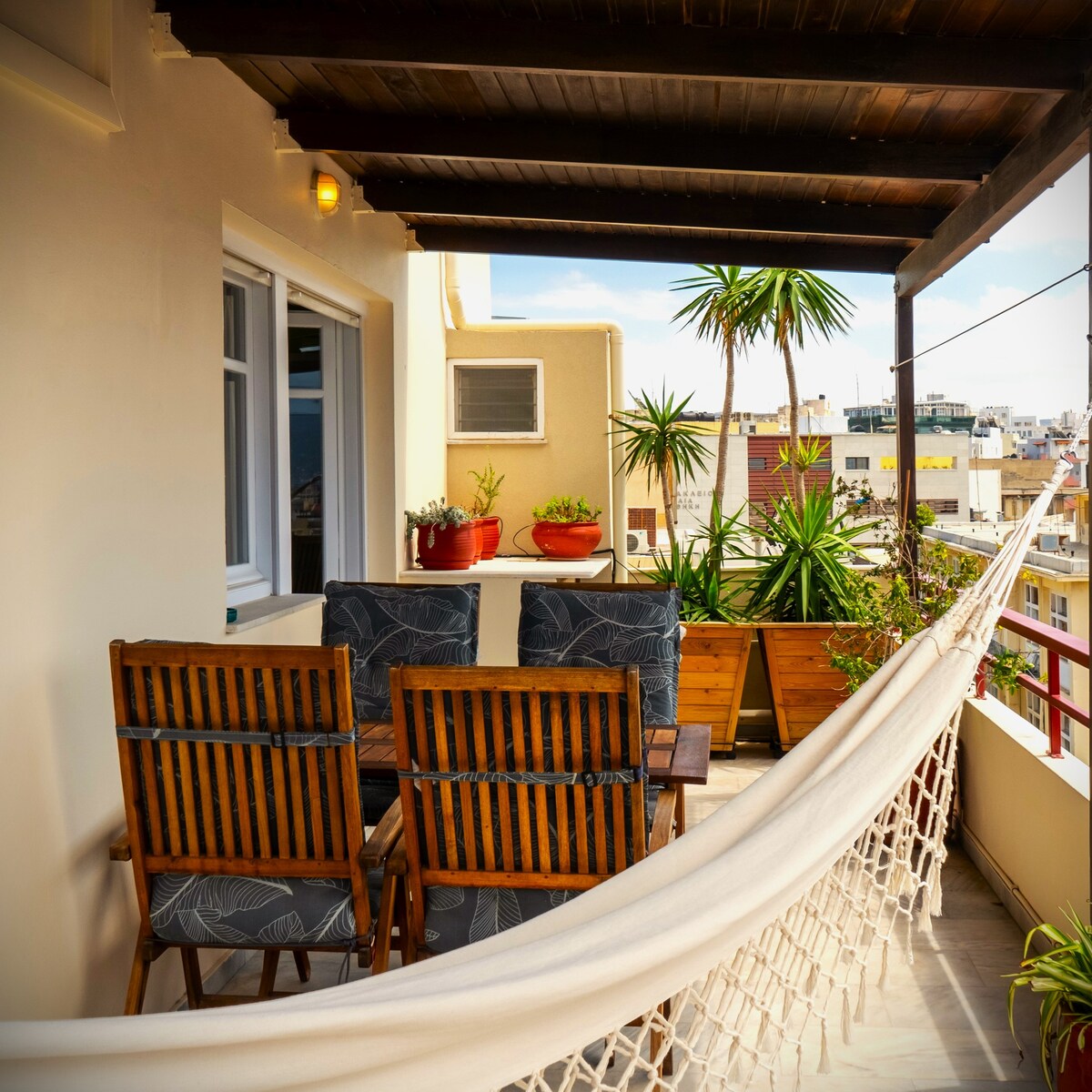 Un apartamento luminoso, tranquilo, cuidadosamente decorado y recientemente renovado. Una gran terraza que ofrece mucho sol y una vista maravillosa, para puestas de sol inolvidables, descansando en una hermosa y cómoda hamaca!!! Está ubicado en el corazón de Heraklion, en una hermosa calle peatonal, a 50 metros de la famosa Plaza de los Leones y a 5 minutos a pie de museos y paradas de autobús que ofrecen conexiones con el aeropuerto, las playas y el palacio de Knossos.