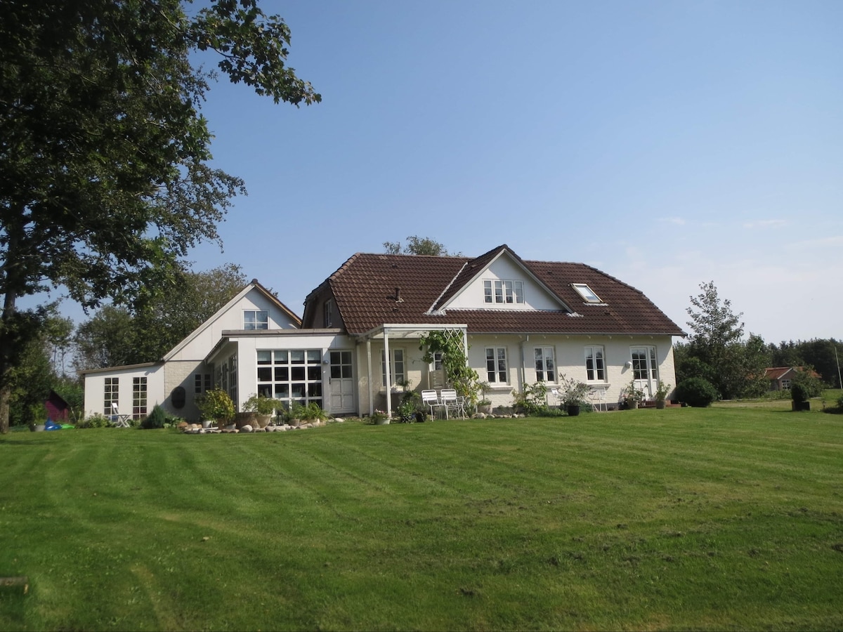 Bienvenido a nuestras habitaciones recién construidas. Todas las habitaciones tienen vistas al bosque y al lago. Estamos cerca del Mar del Norte y Fårup Sommerland. Las habitaciones familiares tienen cama de matrimonio y litera, tienen baño privado y terraza privada, mientras que las habitaciones dobles del primer piso tienen un balcón francés y baño privado en la planta baja. Todas las habitaciones comparten una gran cocina común. Las habitaciones están en una casa de huéspedes en una granja con varios animales y tenemos un taller de cerámica.