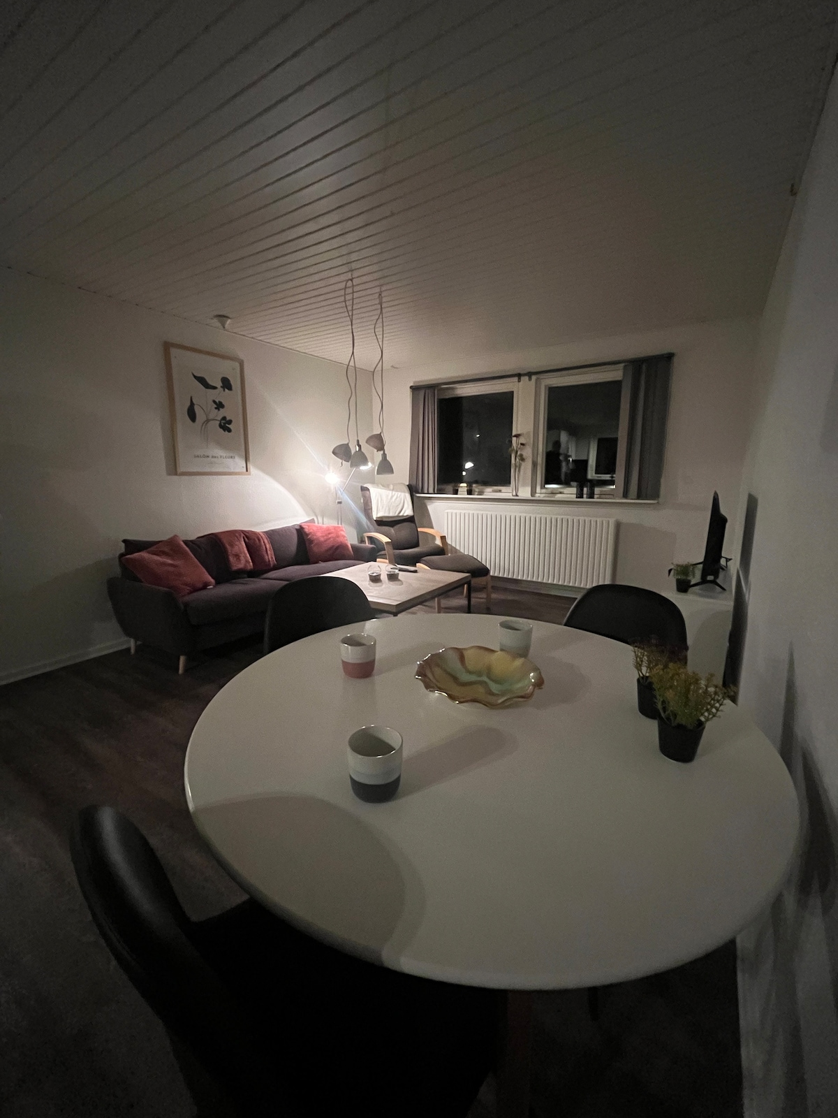 Bonito apartamento amueblado de 80 m2 en el sótano. Incluye una gran sala de estar/sala de estar, cocina, baño/inodoro, dormitorio con cama doble y bonito patio. Al reservar 3 o 4 personas, el dormitorio adicional con 2 camas individuales estará disponible. Estacionamiento gratuito para 1 coche. La televisión en la sala de estar tiene acceso a la red por cable y al yeso cromado. La televisión en la habitación está con yeso cromado Internet gratuito El apartamento está a 8 km del centro de la ciudad de Aalborg, a 3 km de AAU y a 3,5 km de Gigantium. Está a 0,5 km del autobús y a 1 km de las tiendas.