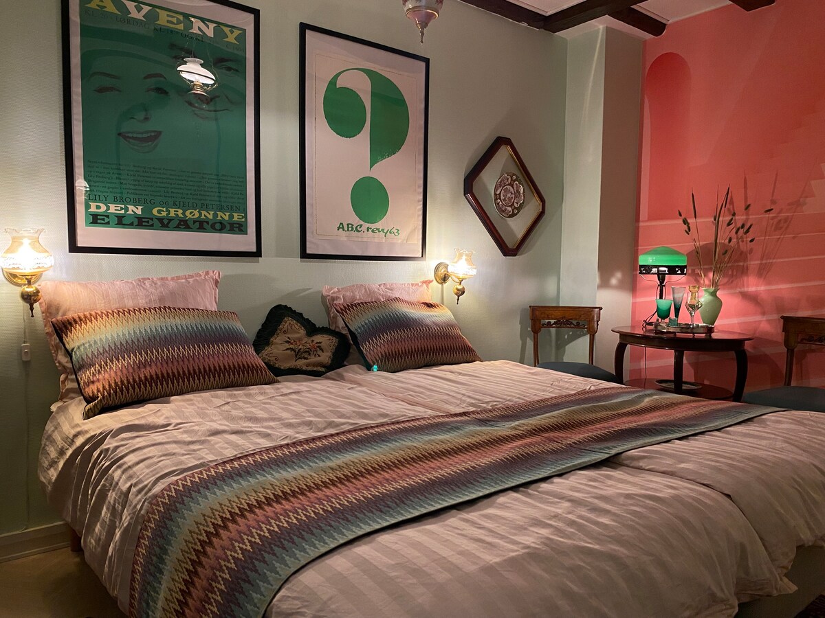 La habitación «Green Elevator» de la película del mismo nombre La acogedora habitación con carteles originales, toques agradables y peculiaridades te dan ganas de quedar un poco más en Viborg Las 10 habitaciones del actor Centralen están construidas después de diferentes películas danesas antiguas. El ambiente en el hotel es familiar y es un hotel tranquilo y acogedor en el corazón de Viborg Compra de desayuno y parking privado. Estaremos encantados de consultar el brunch y restaurantes más bonitos de Viborg, así como el aparcamiento gratuito.