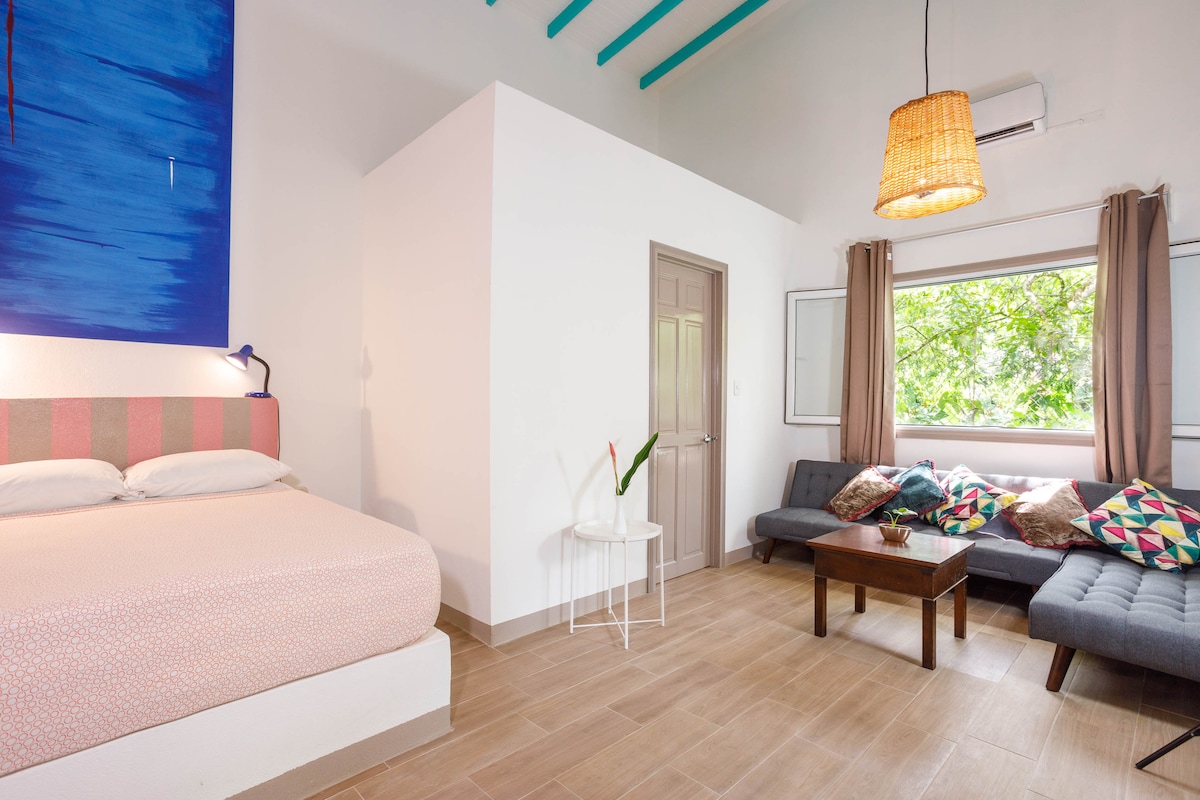 Estudio acogedor con cama tamaño king y vistas a la piscina cerca de Puerto Viejo
