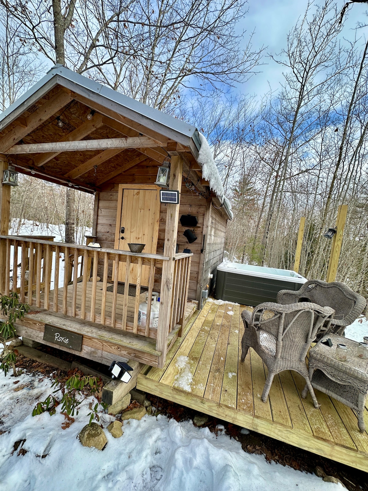 Si todo lo que necesitas es una cama, un baño y una bañera de hidromasaje, ¡Roxie es la cabaña para ti! Una cómoda cama de tamaño completo, un inodoro de compostaje, una mininevera, una estufa de leña y un calentador eléctrico están aquí para ti en esta acogedora cabaña de 8x12 en el bosque. Acceso 2wd y una plaza de aparcamiento cerca de tu puerta. ¡Rutas de senderismo, kayak, pesca, esquí de fondo o raquetas de nieve y luego regresa a tu pequeño espacio para relajarte y disfrutar! Una chimenea de leña, una mesa exterior y sillas hamaca. Baño para invitados con ducha 24/7