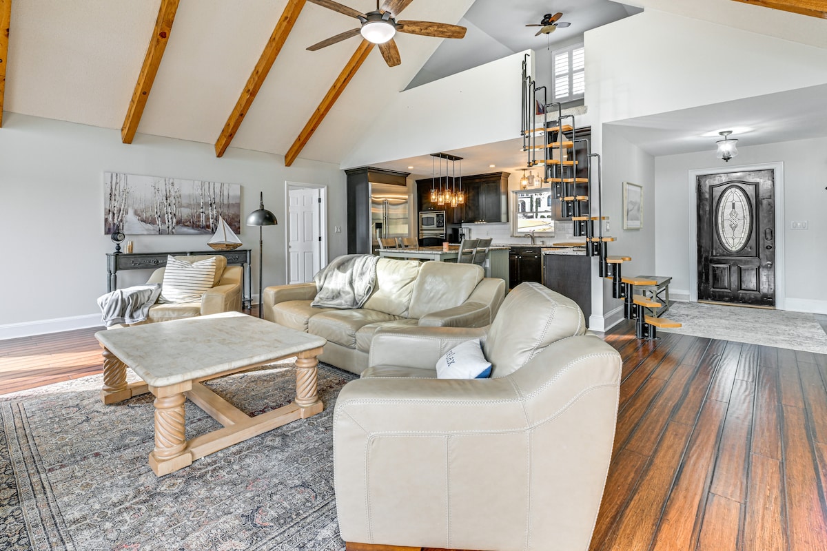 Espacioso refugio frente al lago con 3 dormitorios tamaño king (2 con baño), sala de juegos y un enorme porche cubierto con vistas tranquilas. Disfruta del muelle privado, los kayaks, las tablas de paddleboard, la fogata y un patio plano perfecto para juegos de patio. En el interior, encontrarás una cocina bellamente renovada, televisores inteligentes y entretenimiento para todas las edades. Ya sea relajándose en el porche o explorando el lago Norman, Blue Heron Hideaway está diseñado para la comodidad, la conexión y la diversión junto al lago.