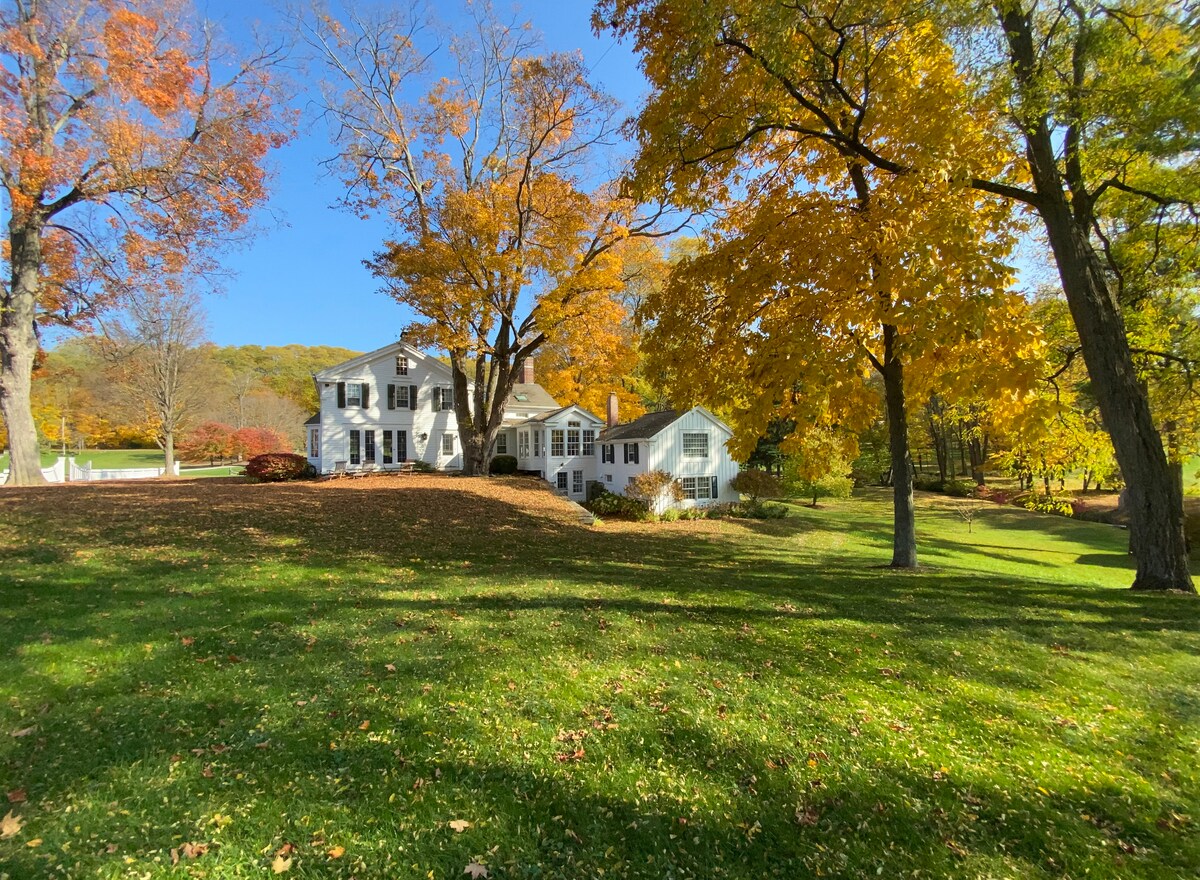 Millstone Manor se encuentra en el valle entre Nueva York y Connecticut, una ubicación ideal para trabajar y jugar. Estamos en el este de Hudson Valley de Nueva York, junto a las cercanas colinas de Litchfield del noroeste de Connecticut. Una entrada compartida conduce a esta casa de tres dormitorios bien equipada con aire acondicionado central y biblioteca/oficina privada. Una selección curada de obras de arte cuelga en las paredes. Las conexiones wifi y Ethernet por cable proporcionan servicio de internet a la biblioteca y a los escritorios de toda la casa.