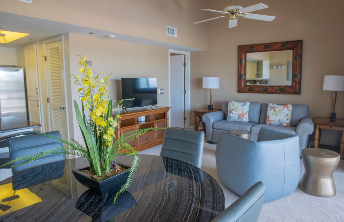 ¡Te damos la bienvenida a nuestra propiedad con vistas al mar, perfecta para una escapada relajante! Disfruta de impresionantes vistas, camina hasta restaurantes y disfruta de actividades como motos acuáticas, kayak, yoga en la playa, chárteres de pesca, parasailing, excursiones en barco al atardecer y campos de golf locales. Después de un día lleno de diversión, ¡pasa el rato junto a la piscina con tu cóctel favorito junto a la piscina! Reserva ahora para una escapada serena llena de aventuras y una belleza impresionante.