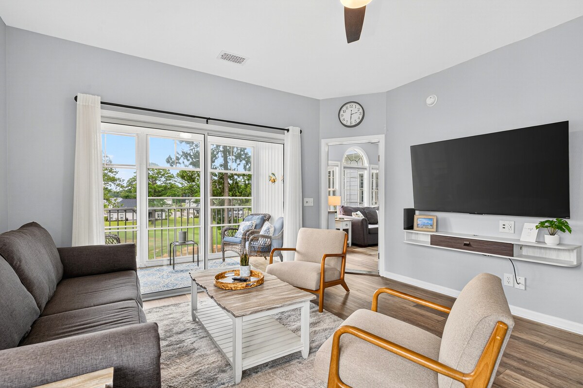 Acogedor apartamento de 1 dormitorio y 1 baño en el conocido campo de golf Aberdeen Country Club. A pocos minutos de North Myrtle Beach o Cherry Grove y de todas sus atracciones. Cerca de excelentes tiendas, actividades para familias, restaurantes y la Reserva Natural de Waccamaw. Ideal para aquellos que quieren la experiencia de playa, pero prefieren un lugar tranquilo para relajarse al final del día. El apartamento tiene una cocina completa con servicios básicos. La piscina al aire libre, la cancha de tenis y las zonas de picnic están incluidas en tu estancia.