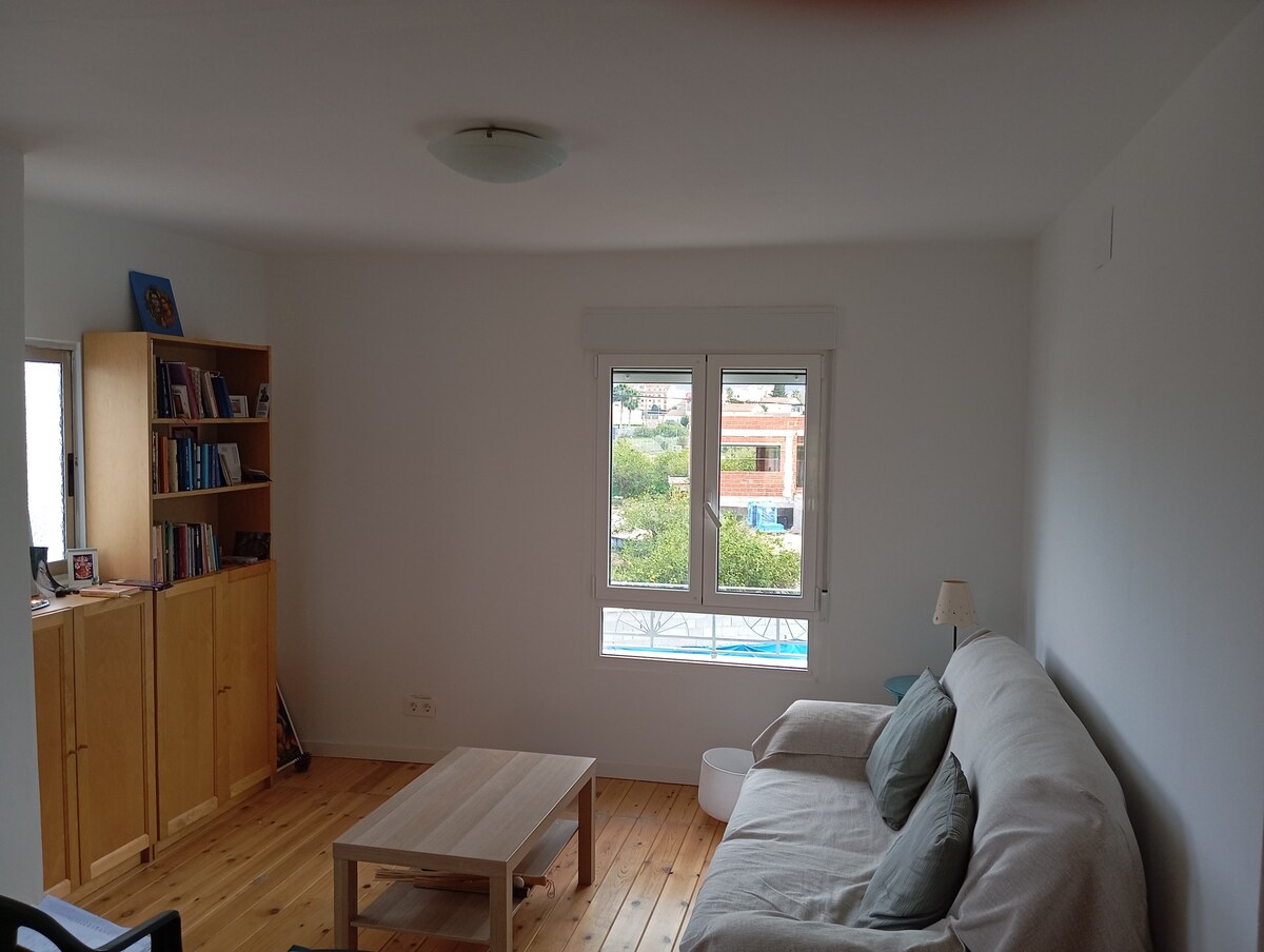 Precioso estudio en un oasis de tranquilidad pero muy próximo al centro de la ciudad, a siete minutos en coche. Aquí podrás estudiar, trabajar o desconectar, según desees. Es un estudio independiente, totalmente equipado situado en la primera planta de una casa unifamiliar. No tiene ascensor. La cama es de 150x200cm. Dispone de un sofá con chaisselongue y smart tv. Tiene una pequeña cocina con todo lo necesario para el día a día, un amplio cuarto de baño y un vestidor.