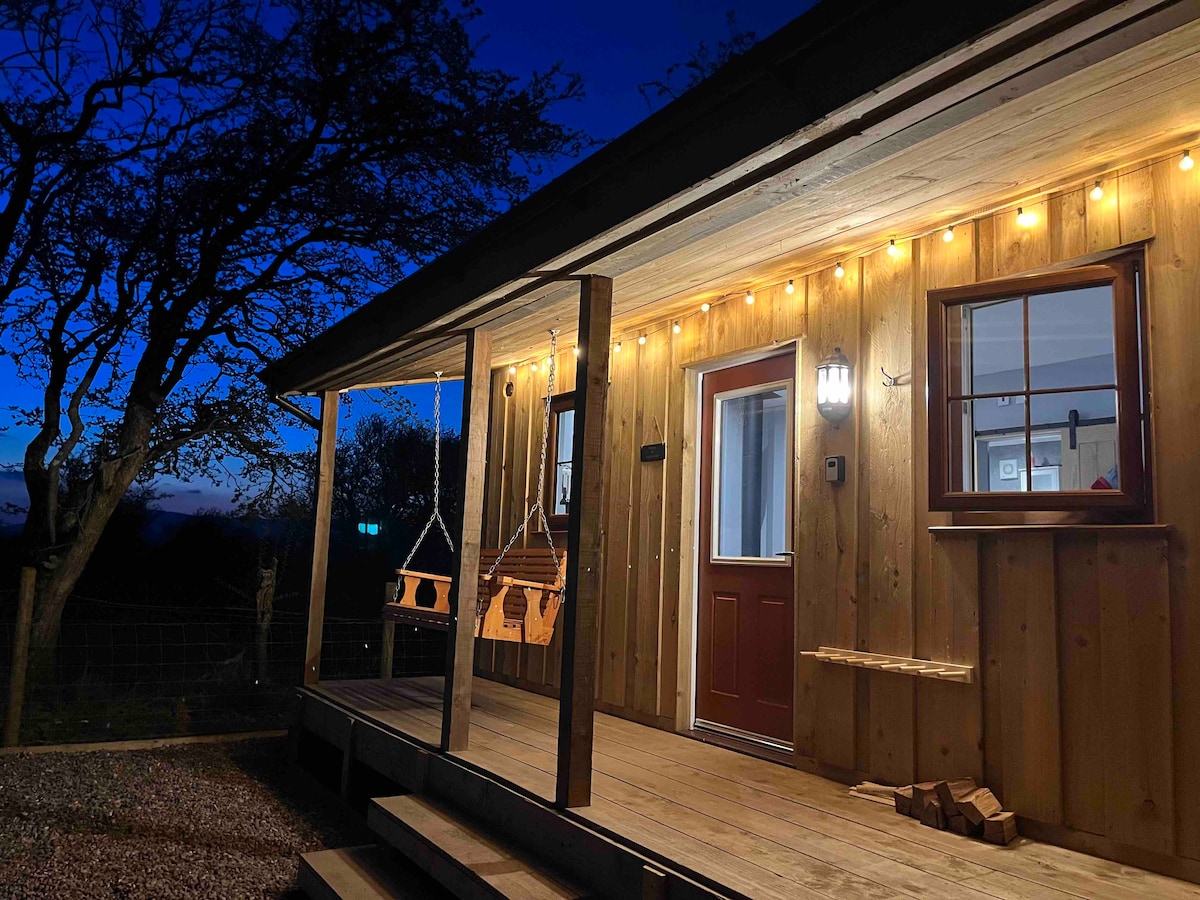 Set on a family farm, the cabin is a peaceful luxurious retreat with spectacular views of Snowdonia and Cardigan Bay. Cattle graze in open pastures all around. The faint sound of the stream running in the distance that you can wonder down to through the ancient woodland. Enjoy views from Snowdon down the Welsh coast from a king size bed. The warm glow from the fire flickering on the pillow. The large rainfall shower and warmth underfoot from underfloor heating perfect on a cold evening.