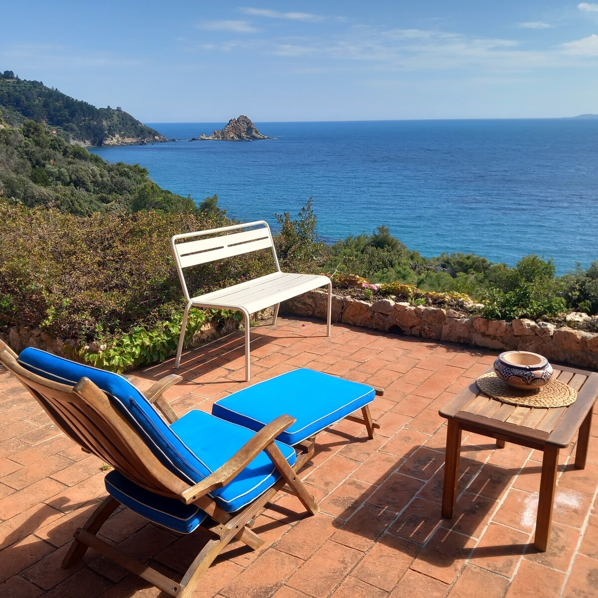 ¡PEQUEÑA casa de piedra de solo 18 m2 situada en los acantilados de Monte Argentario con unas vistas inmejorables al mar mediterráneo y a la isla de Giglio! Porto Santo Stefano se encuentra a 10 minutos en auto. Estudio rústico con un sofá cama doble, cocina pequeña, baño, una mesa pequeña con sillas y un pequeño sofá adicional. Aire acondicionado y ventilador de techo, mosquiteros. 1 espacio de estacionamiento a lo largo de la carretera panorámica junto a la puerta de entrada de la propiedad. Aviso: ¡57 ESCALONES separan la puerta de entrada de la casa! Wifi de bolsillo