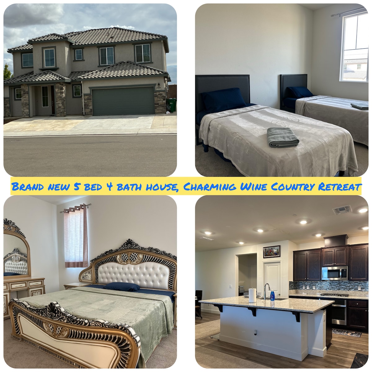 Discover our fantastic 5-bedroom home, mere minutes from acclaimed wineries and the vibrant downtown scene. Accommodating up to 16 guests, our house boasts an open-concept living and dining space, fully equipped kitchen, and plush seating for your comfort. Each bedroom is tastefully adorned with cozy bedding. Outside, a spacious backyard offers seating and a BBQ. Just a short drive away from the breathtaking Lake Tahoe! Secure your stay today and immerse yourself in the allure of charming Lodi!