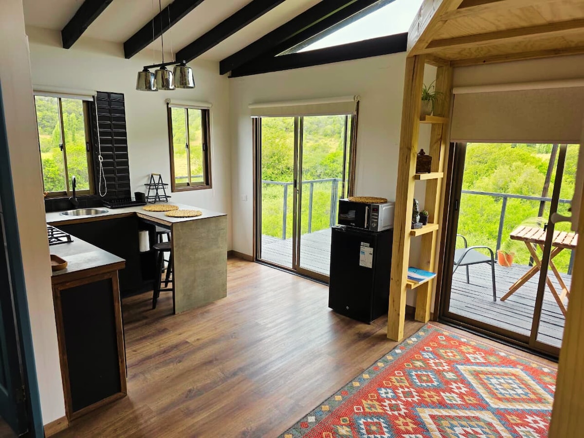 Acogedor refugio en doble altura(47mt2), de diseño único. Ideal para escapar del viento costero característico de la zona y disfrutar de templados valles, quebradas y naturaleza virgen. A pasos de la playa, restaurantes y supermercados. Servicio de HOT TUB $38.500 por estadías de 2 noches. Distancias: - A 2min de supermercado. - A 2,5km de La Vega de pupuya. - A 4km de Matanzas. - A 24km de Puertecillo. (40min) - A metros de Arena Pupuya Padel. En días de LLUVIA uso de 4x4 es requerido.
