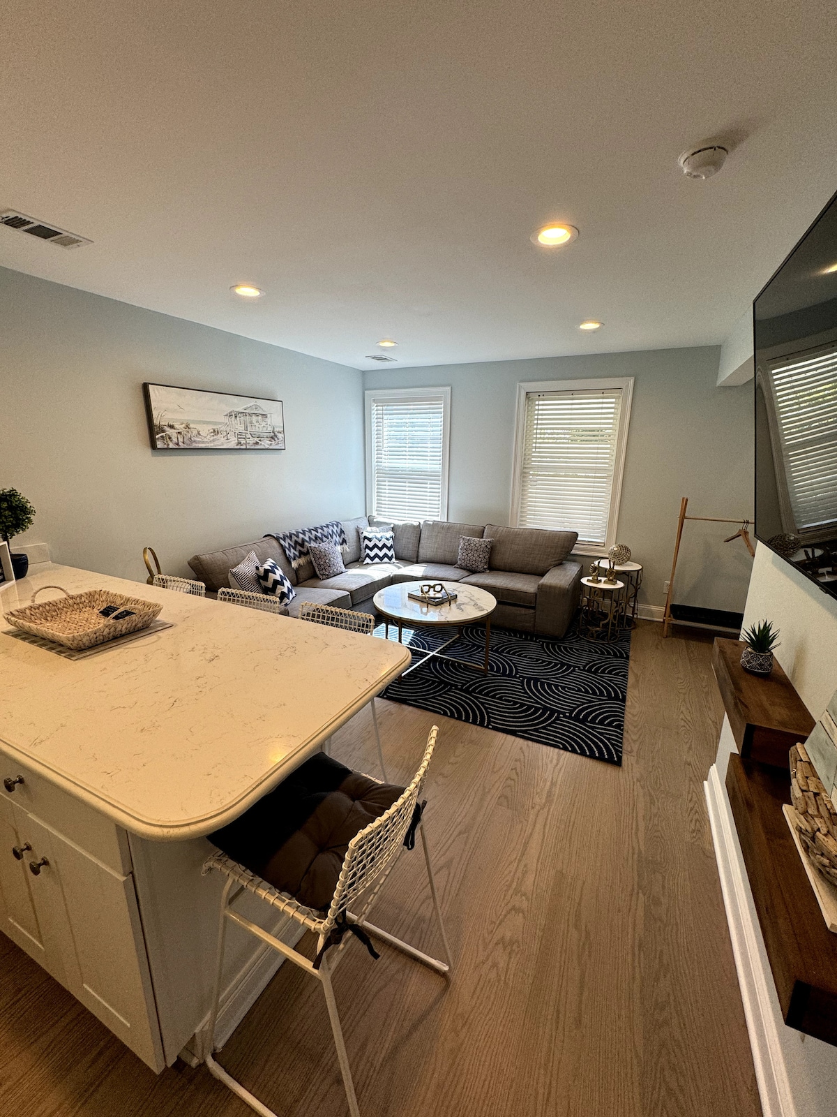 Diviértete con toda la familia y amigos en este elegante departamento de 2 dormitorios recién renovado de 900 pies cuadrados. Disfrutarás de la privacidad. No hay niños ni mascotas que vivan en la propiedad . Solo 2 adultos viven en el apartamento de arriba. Sí, es un sótano, pero hay ventanas en todas las habitaciones, techo alto y una puerta de tamaño completo para entrar y salir. Una vez dentro, disfrutarás de luz natural desde grandes ventanales, mucho espacio habitable con un bar para pasar el rato con familiares y amigos.