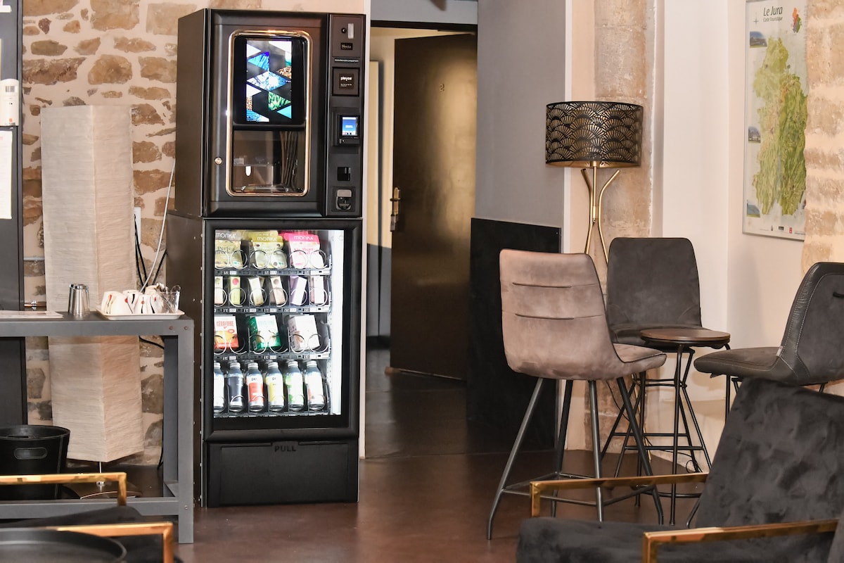 Chambre pour 2 personnes avec 2 lit séparé (possible double) avec salle de bain. Position centrale à Mouchard, entre Arbois et Arc-Et-Senans, idéalement situé au porte du Doubs et du Jura.