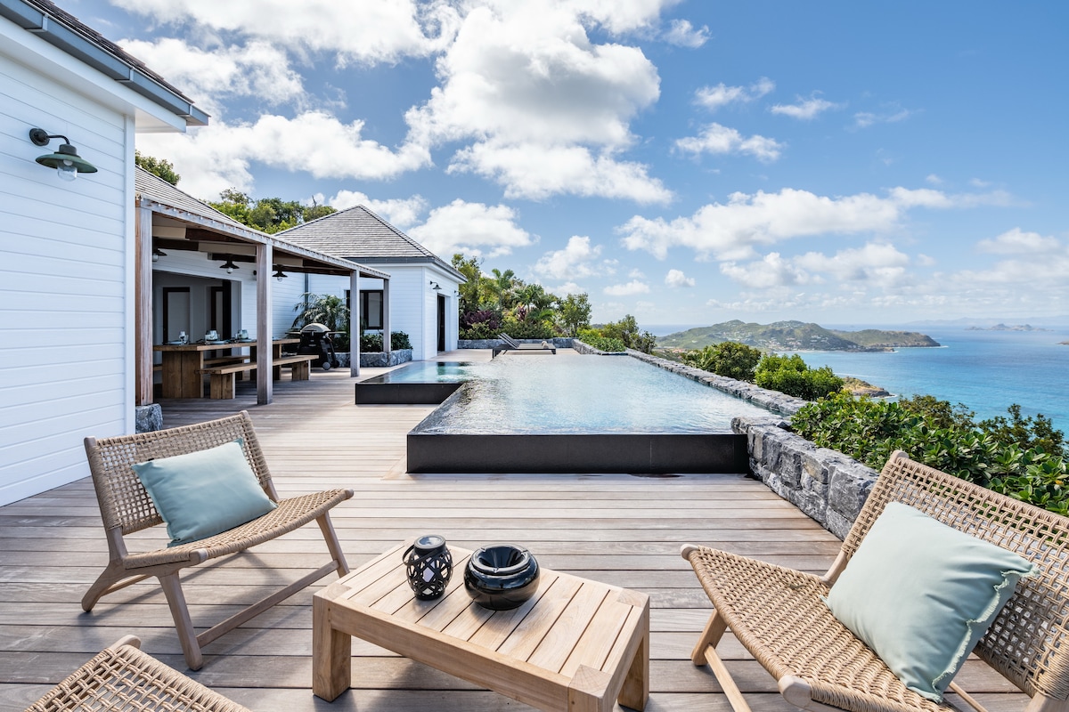 Nestled into the lush green hillside of Jean Bay, this classic St. Bart’s villa focuses on relaxing vibes and scenic ocean views. Whether you are lounging by the pool or sharing a meal on the upper terrace, you’ll have the breathtaking Caribbean Sea right there with you. When you’re ready to explore, Nikki and St. Jean beaches are nearby, as well as shopping, and the Capital, Gustavia. Copyright © Luxury Retreats. All rights reserved. BEDROOM & BATHROOM • Bedroom 1 - Primary: Queen size bed, Ensuite bathroom with 2 stand-alone rain showers, Dual vanity, Bidet, Television, Safe, Ceiling fan, Private balcony, Ocean view • Bedroom 2: Queen size bed, Ensuite bathroom with stand-alone rain shower, Television, Safe, Terrace • Bedroom 3: Queen size bed, Ensuite bathroom with stand-alone rain shower, Television, Safe, Terrace • Bedroom 4: 2 Twin size beds, Ensuite bathroom with stand-alone shower STAFF & SERVICES Extra Cost (advance notice may be required): • Activities and excursions • Washer/dryer services