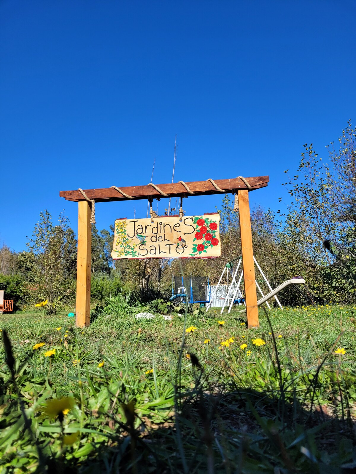 Les ofrezco un espacio de 2500 mtr2 de áreas verdes, espacio para barbacoa y un riachuelo apto para refrescarse. El espacio es solo para usted, no se comparte con otros huéspedes o con más cabañas. La casa es de 50mtr2, equipada con todo lo necesario para una estadía comoda. Se ubica a 300 mtrs de autopista 5 sur, camino a la Aguada con excelente acceso pavimentado. Las cataratas del los Saltos del Laja se encuentran a 2 minutos.