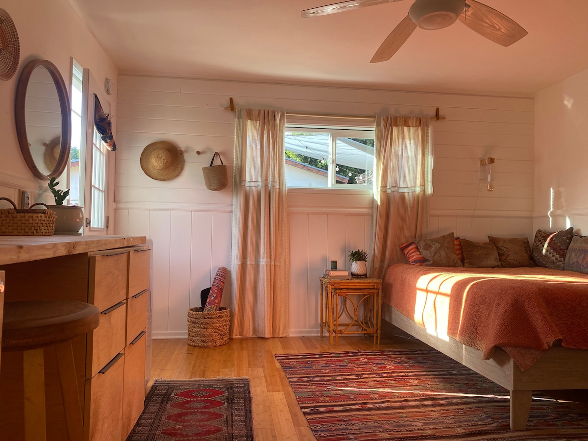 Esta es una encantadora casa de huéspedes totalmente renovada construida en la parte trasera de nuestra casa. Estamos situados en un barrio suburbano tranquilo. La habitación tiene una cama individual, baño privado, entrada propia, plaza de aparcamiento designada, horno microondas, nevera pequeña, cafetera, placa calefactora de 2 fuegos, plancha/tabla de planchar, calefacción y aire acondicionado. También hay un patio donde puedes sentarte a disfrutar del fresco clima de California. Ten en cuenta que solicitamos a todos los huéspedes que presenten un documento de identificación oficial antes de la llegada.