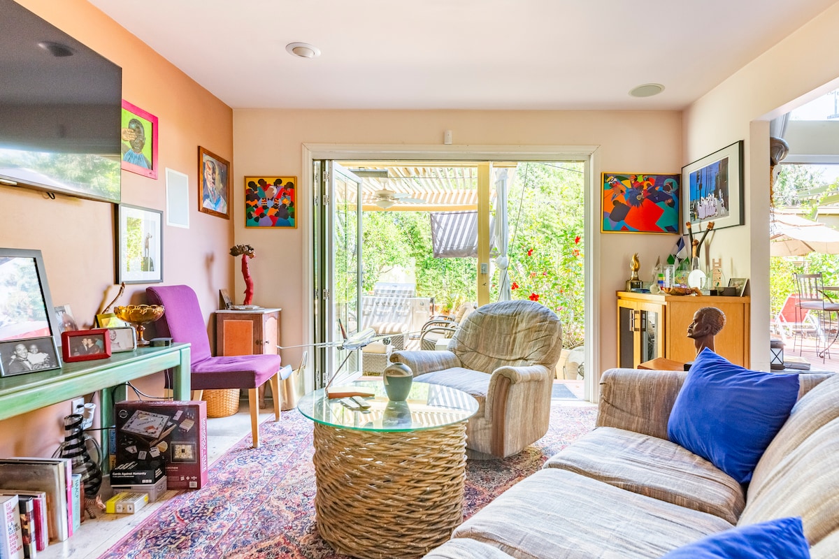 Mímate en nuestro refugio privado. Pasa tiempo en esta casa de 4 dormitorios y 3,5 baños de mediados de siglo en California. Esta propiedad tiene una casa de huéspedes con área para dormir, cocina pequeña y baño privado que se puede alquilar por separado. Este alojamiento tiene capacidad para 10 personas. Esta es la escapada perfecta para grupos de amigos, familiares o pequeños retiros de la empresa. Estamos buscando crear una escapada tranquila en medio de la ciudad.