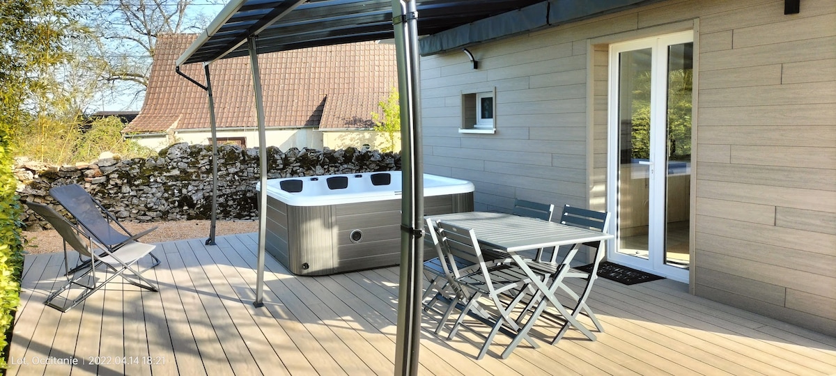 Chalet construido en nuestro terreno de vivienda Ideal para fines de semana y estancias en todas las estaciones. En un entorno tranquilo, en el campo en el Causse, el estudio de jardín situado en el municipio de Issendolus y cerca de los lugares de interés turístico más conocidos: Relájese en este alojamiento tranquilo y elegante. Le seducirá su comodidad, tranquilidad, diseño muy funcional y su SPA en la terraza solo para usted.