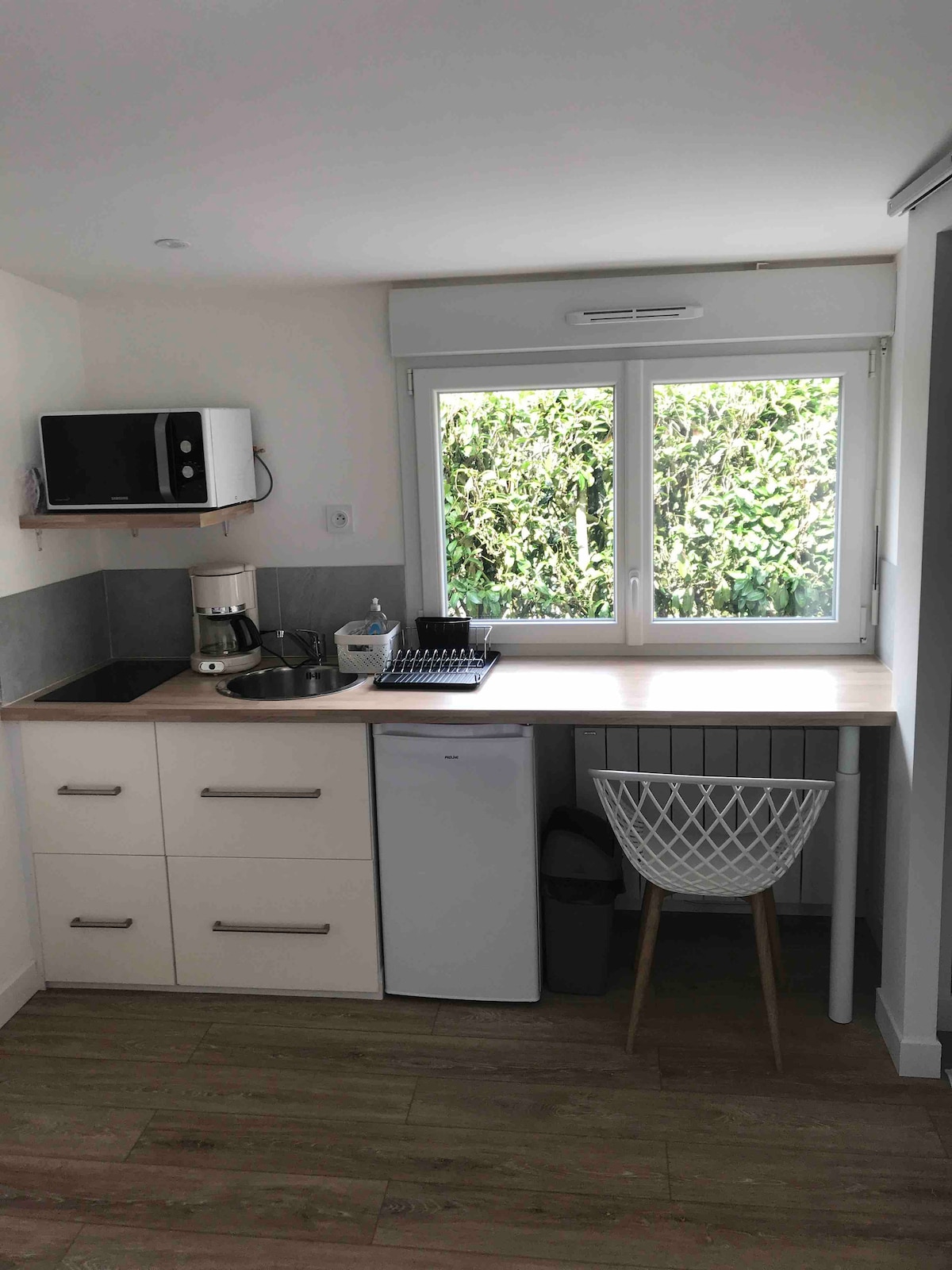 Muy cerca de Laval, pequeño apartamento independiente en un pabellón, situado a 5 minutos a pie del centro de Changé. El apartamento se encuentra en la parte trasera de la casa. Tiene una zona exterior privada con mesa, sillas y tumbonas. El apartamento consta de tres habitaciones una sala de estar con TV y sofá cama para dos personas. Una cocina equipada, hornillo de gas microondas .. un dormitorio con una cama queen size de 160 y un escritorio. un baño con ducha y WC.