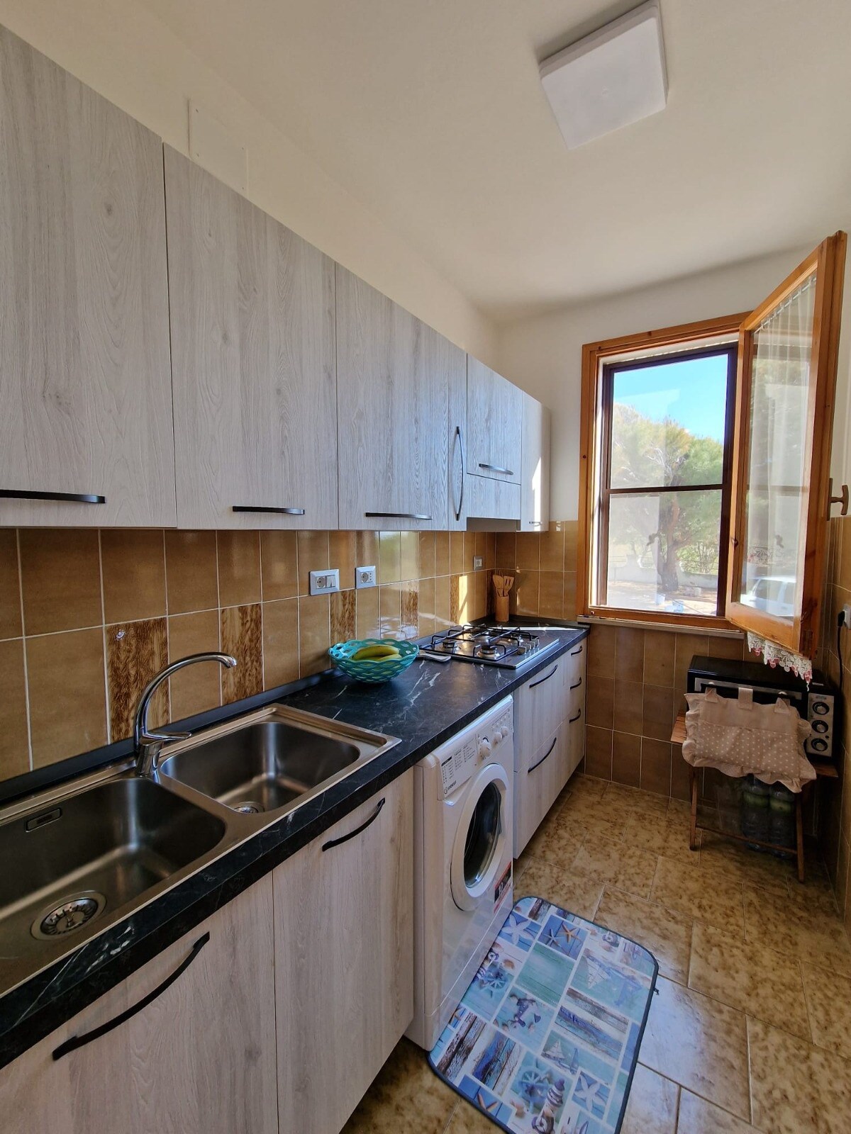 Precioso apartamento de tres habitaciones, espacioso y recién reformado, de 80 metros cuadrados, con sala de estar de planta abierta conectada directamente al patio-jardín con una gran sombrilla y muebles de exterior, acompañados de limoneros, naranjos, pomelos, ciruelos, etc., donde se puede disfrutar a la sombra de estos árboles de fantásticas cenas refrescadas por la brisa del mar. 6 plazas + cuna, a 150 metros de las espléndidas playas de Lu Bagnu, ¡galardonadas con la «Bandera azul 2023»! ¡Situado en la playa del espléndido pueblo medieval de Castelsardo!
