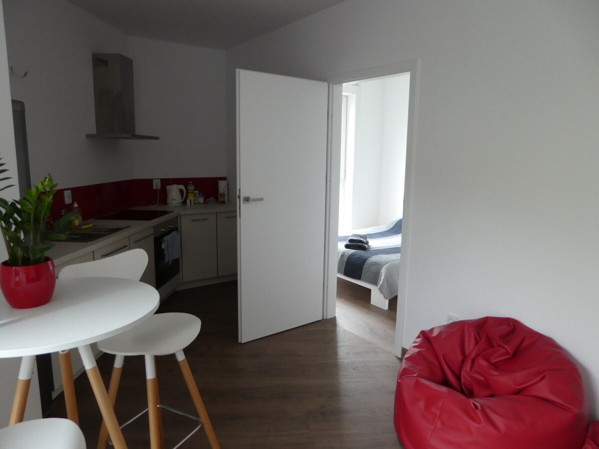 Nuevo apartamento de 2 dormitorios con 1 baño, situado a poca distancia a pie del casco antiguo. Muy moderno, perfectamente equipado y amueblado, con todo lo necesario para que tu estancia sea perfecta. Nuestro apartamento tiene un dormitorio con cama doble, un segundo dormitorio con cama tamaño queen y un sofá cama en la sala de estar. Si necesitas lavar la ropa rápidamente, tenemos lavadora/secadora en el baño para tu comodidad. Ofrecemos a los huéspedes sábanas, toallas, gel de ducha, champú y jabón. Nuestra cocina tiene cubiertos, platos, vasos, tazas y ollas.