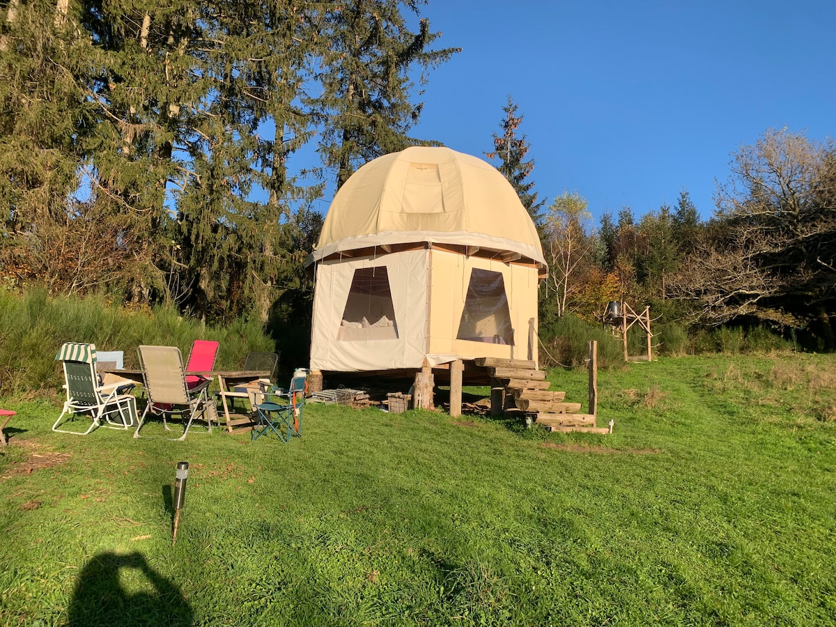 Recupere energías en este alojamiento insólito en plena naturaleza. Una vez estacionado, tendrá 5 minutos a pie para subir a la cúpula, por un camino de bosque, seguido de una hermosa pradera. Estamos rodeados de montañas, prados y bosques, tranquilos y sin vecinos humanos:) Hay una estufa que calienta bien la parte de abajo, la planta de arriba es más fresca. Los huéspedes pueden relajarse frente a hermosas puestas de sol. ¡Un lugar ideal para meditar, pasear, recargar energías o hacer senderismo para los deportistas!
