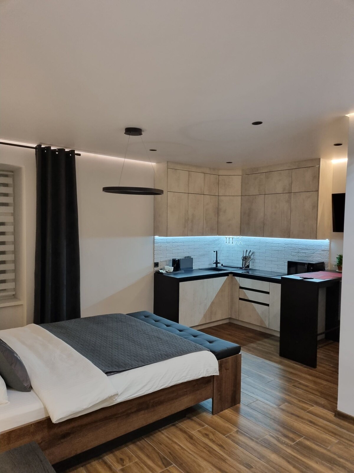 El nuevo apartamento en el corazón de la ciudad, ubicado en una calle tranquila, te permitirá relajarte a pesar del ruido fuera de la puerta. La habitación tiene todo lo que necesitas incluso para tu estancia larga: cocina equipada, nevera, placa de inducción y todo lo que necesitas para cocinar, lavadora con secadora, internet y televisión inteligente. Cerca de restaurantes, lugares de entretenimiento, catedral, acuario. Bienvenido🩵💛