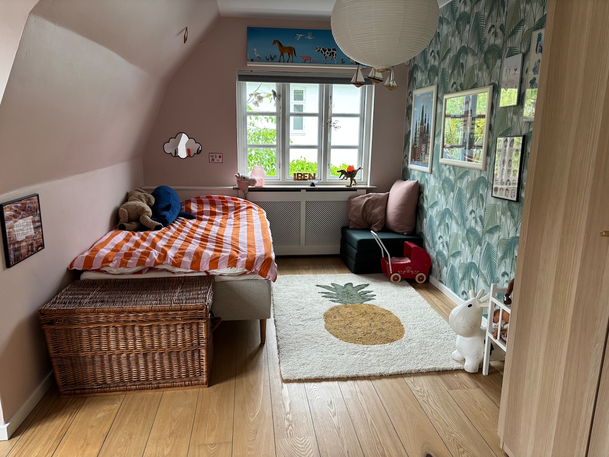 Casa familiar luminosa y acogedora en un vecindario privado y tranquilo. Estilo nórdico clásico con una cocina nueva, dos baños, suelos de madera y un ambiente acogedor. Amplia terraza y jardín en flor, perfecto para relajarse. Ubicado en una zona pintoresca cerca de la playa, el parque histórico y el encantador pueblo de pescadores. Es ideal para familias que buscan paz y naturaleza, pero cerca de la ciudad. La casa tiene 150 m² y a solo 15 km del centro de Copenhague. Los perros son bienvenidos, hay espacio para todos.