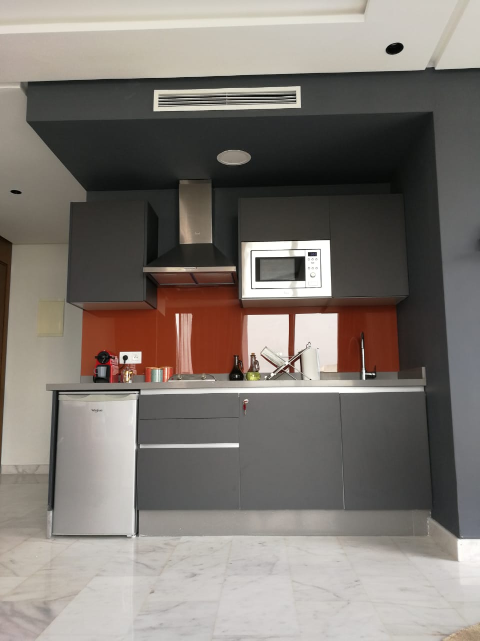 Tenemos un nuevo concepto de apartamento de hotel de lujo nuevo. El apartamento está situado en una cuarta planta con orientación sur, por lo tanto muy luminoso. Una superficie de 53 m2 amueblada y amueblada con cuidado para el máximo confort. De hecho, situado en el corazón de Casablanca, el apartamento es muy práctico debido a su ubicación geográfica. La cocina está equipada con todas las comodidades necesarias, así como una lavandería disponible en el lugar.
