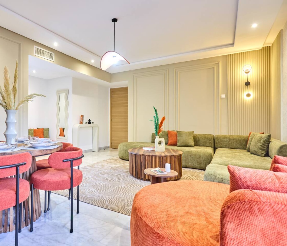 Somptueux appartement à proximité de Casablanca Finance City À seulement 9 minutes du Stade Mohammed V. - Profitez d’un cadre de vie élégant et moderne, à 50m du Tramway et à 5 min à pied du Parc Casa Anfa, des commerces, cafés branchés et supermarchés. - Accès facile à l’autoroute, avec arrêts de bus et taxis à proximité. Parfait pour les familles, et groupes des supporters de la CAN 2025 cherchant. RÉSERVEZ DÈS MAINTENANT et découvrez Casablanca dans un cadre exclusif et relaxant .