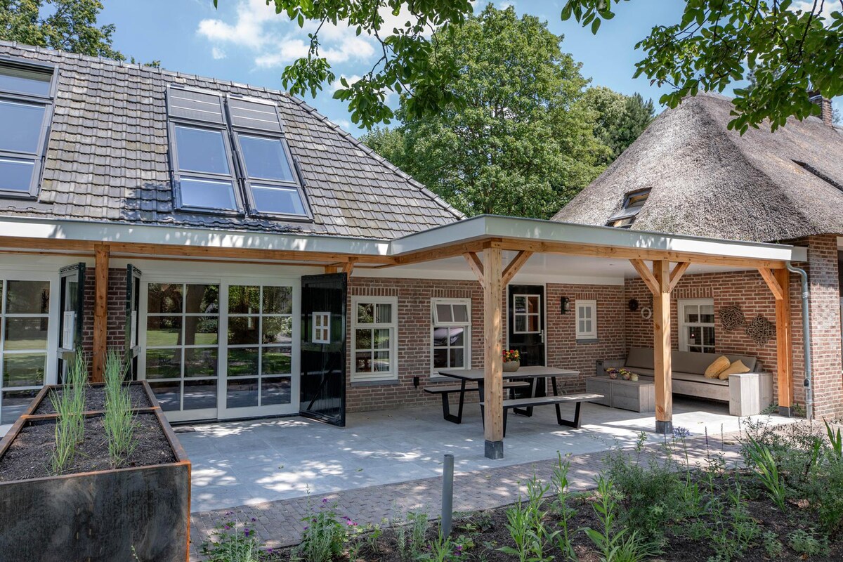 Nuestra casa de campo independiente (aprox. 90 m2) está amueblada con buen gusto y cómodamente. Tiene una sala de estar con una estufa de leña, una cocina amplia y dos dormitorios con aire acondicionado y baño. Las muchas ventanas dan a un hermoso jardín de 5000 m2 (!) y ofrece un mar de paz, espacio y privacidad. El jardín ha sido decorado y mantenido con cariño, y está lleno de plantas y flores, atrayendo ardillas y varios tipos de aves. Junto a la reserva natural, el Maashorst y los bonitos pueblos.