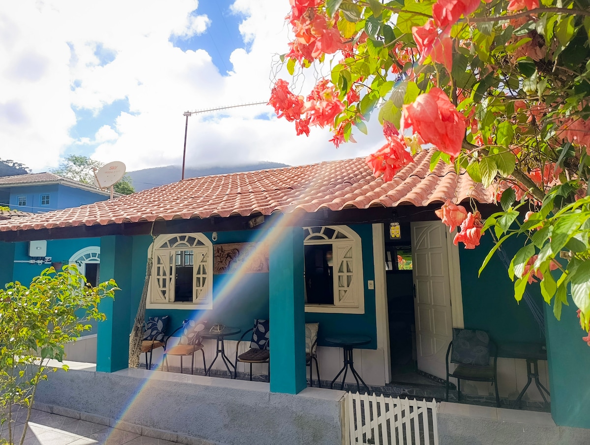 Casa rústica y acogedora con amplio espacio al aire libre con piscina, ideal para que lo disfrutes con familiares y grupos de amigos. La casa está rodeada de montañas y ofrece una hermosa vista del amanecer. Situado justo al lado del río que bordea el condominio, tiene fácil acceso a un punto de baño con agua clara (excepto en caso de lluvia intensa) y una pequeña "playa" natural en el lecho del río, ideal para relajarse.