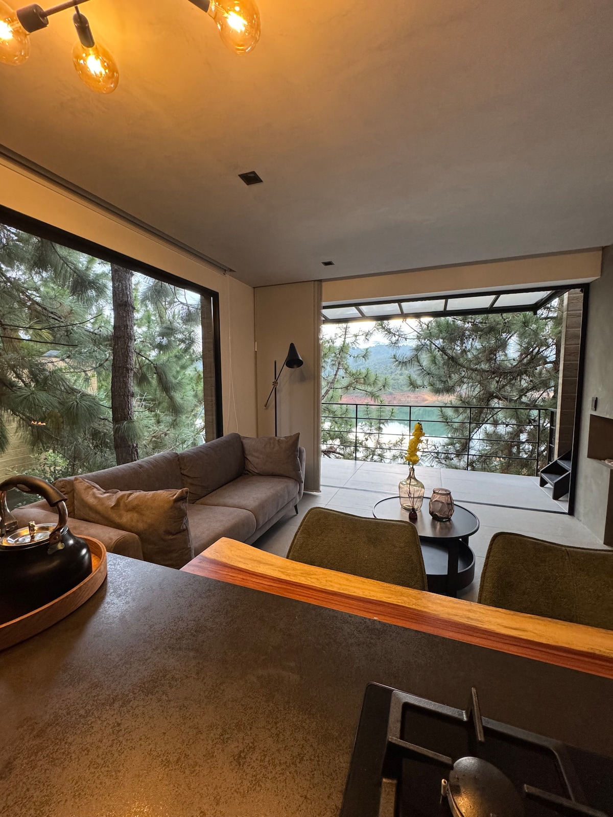 ¡Vive una experiencia excepcional en el corazón del bosque! Disfruta de un lugar tranquilo y acogedor, rodeado de pinos y bosque nativo, ubicado dentro de un condominio residencial con vigilancia privada las 24 horas. Estás a solo 5 minutos en vehículo del parque principal de Guatapé, con acceso fácil y seguro, ya sea en carro o en tuktuk hasta los parqueaderos internos. La cabaña está equipada con todo lo que necesitas para una estadía cómoda, relajante y en contacto con la naturaleza.