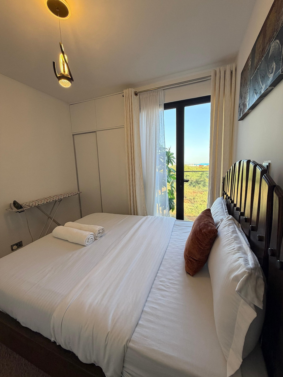 Galaxy En-suite es perfecto para viajes de negocios, turistas, lunas de miel, familias pequeñas y trabajadores remotos. Es un apartamento espacioso y lujoso de 3 dormitorios situado en Imara Daima, en la ciudad de Nairobi, a 10 minutos del aeropuerto JKIA. El apartamento está a pocos pasos del centro comercial Imaara, numerosos centros comerciales, restaurantes y lugares de entretenimiento. La zona se siente tranquila y serena y tiene seguridad las 24 horas.