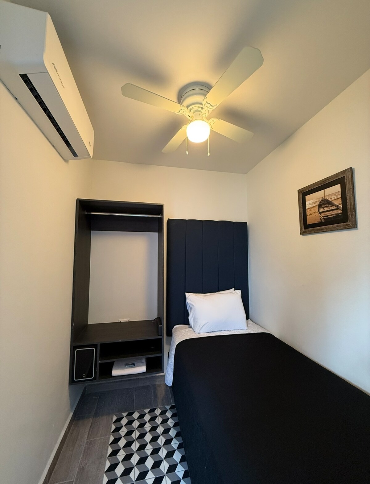 Estancia en Zona Tranquila y Céntrica—Ideal para Vacaciones, Eventos, Viajes de Negocios y Estudiantes Entrada privada en el primer piso Dos camas individuales para tu comodidad Baño privado con shampoo, toallas y secador de pelo Aire acondicionado y ventilador Frigobar, cafetera y utensilios básicos Microondas, fregadero y mesa para comer o trabajar A solo 10 minutos del TEC, Parque Fundidora, Barrio Antiguo, Estadio Banorte y el Centro. ¡Excelente para eventos en Fundidora!