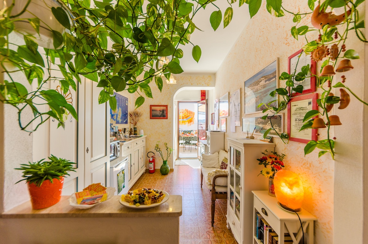 Le due camere matrimoniali, utilizzabili anche come singole, sono ampie e luminose con vista mare, una delle quali offre la possibilità di un letto aggiuntivo. La camera doppia dispone di un balcone. Tutte le camere sono dotate di aria condizionata caldo/freddo. Spazio sala ristoro in comune, per svolgere il check-in e trovare la macchinetta caffè per la colazione al mattino, in autonomia. Shared dining area used for check-in, featuring a coffee machine for morning breakfast.