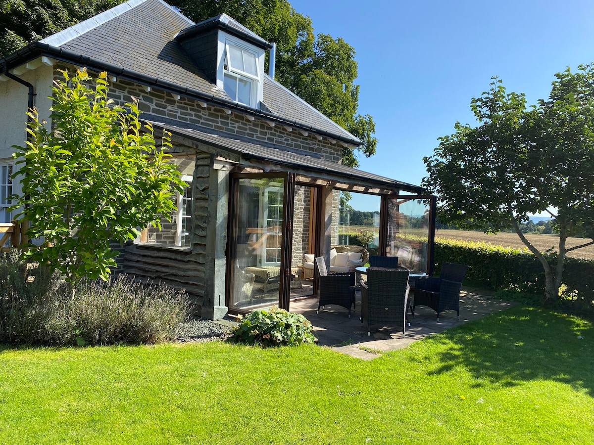 Amplia casa de campo junto al río a 2 millas de Crieff, impresionante balcón orientado al sur y cubierto sobre el río. Situada dentro de los terrenos de una casa privada victoriana. Recientemente reformada con vistas espectaculares a los campos. Incluye cama tamaño king de 180 cm, bañera y ducha. Perfectamente situado para explorar y a solo 10/20 minutos de los únicos dos restaurantes con 2 estrellas Michelin en Escocia. Ahora también tenemos una casa de baños exterior en el jardín donde podrás recostarte y disfrutar de las vistas junto al río.