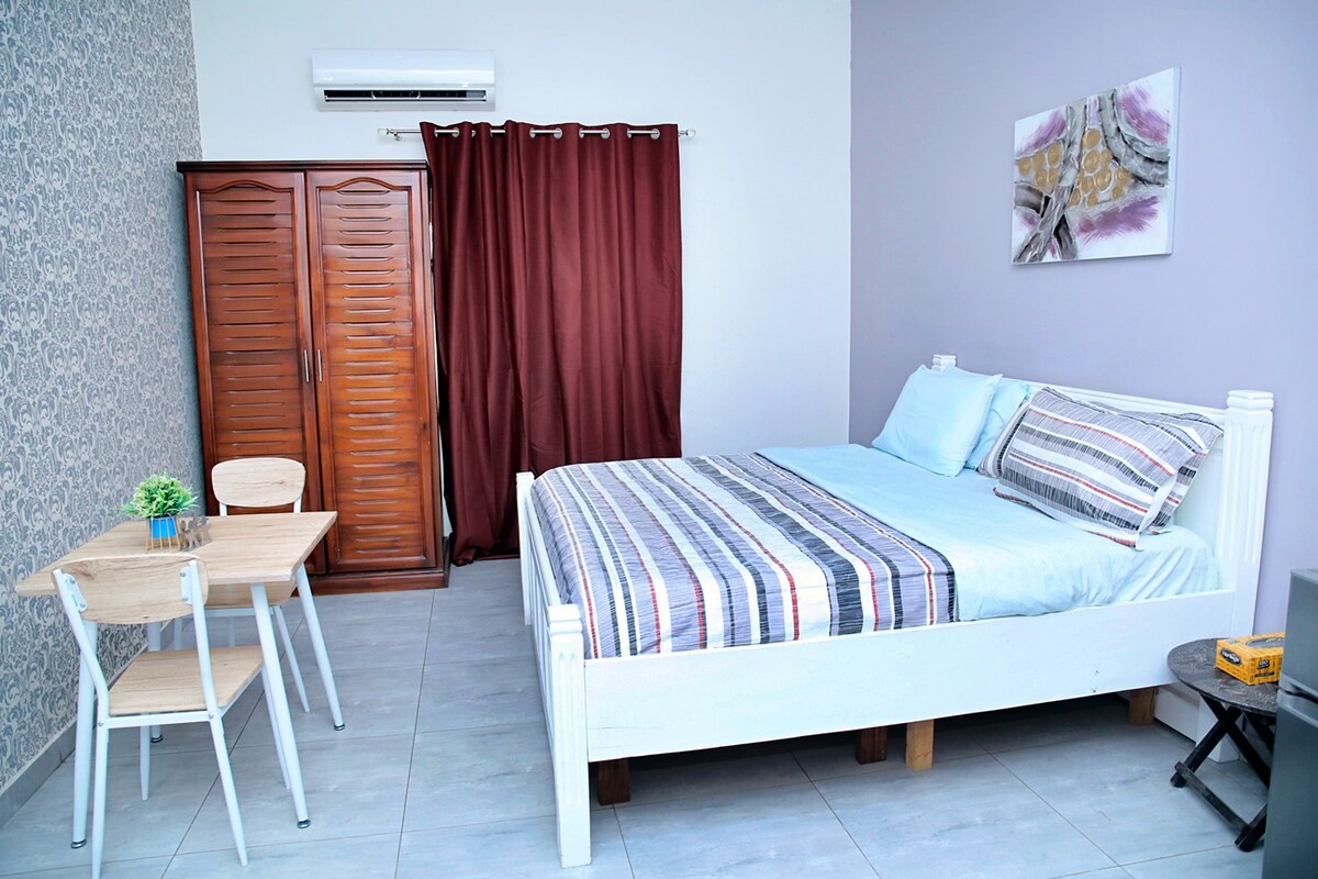 Este espacioso estudio ubicado en Loxwood House, East Legon, es perfecto para viajeros solitarios, parejas o huéspedes de negocios. El estudio incluye una cómoda cama, una acogedora sala de estar, una cocina bien equipada y todo lo esencial que necesitas para una estancia sin problemas. Es un espacio tranquilo y privado para alojarse, además de estar cerca de tiendas, restaurantes y atracciones locales. Ideal para estadías cortas y largas