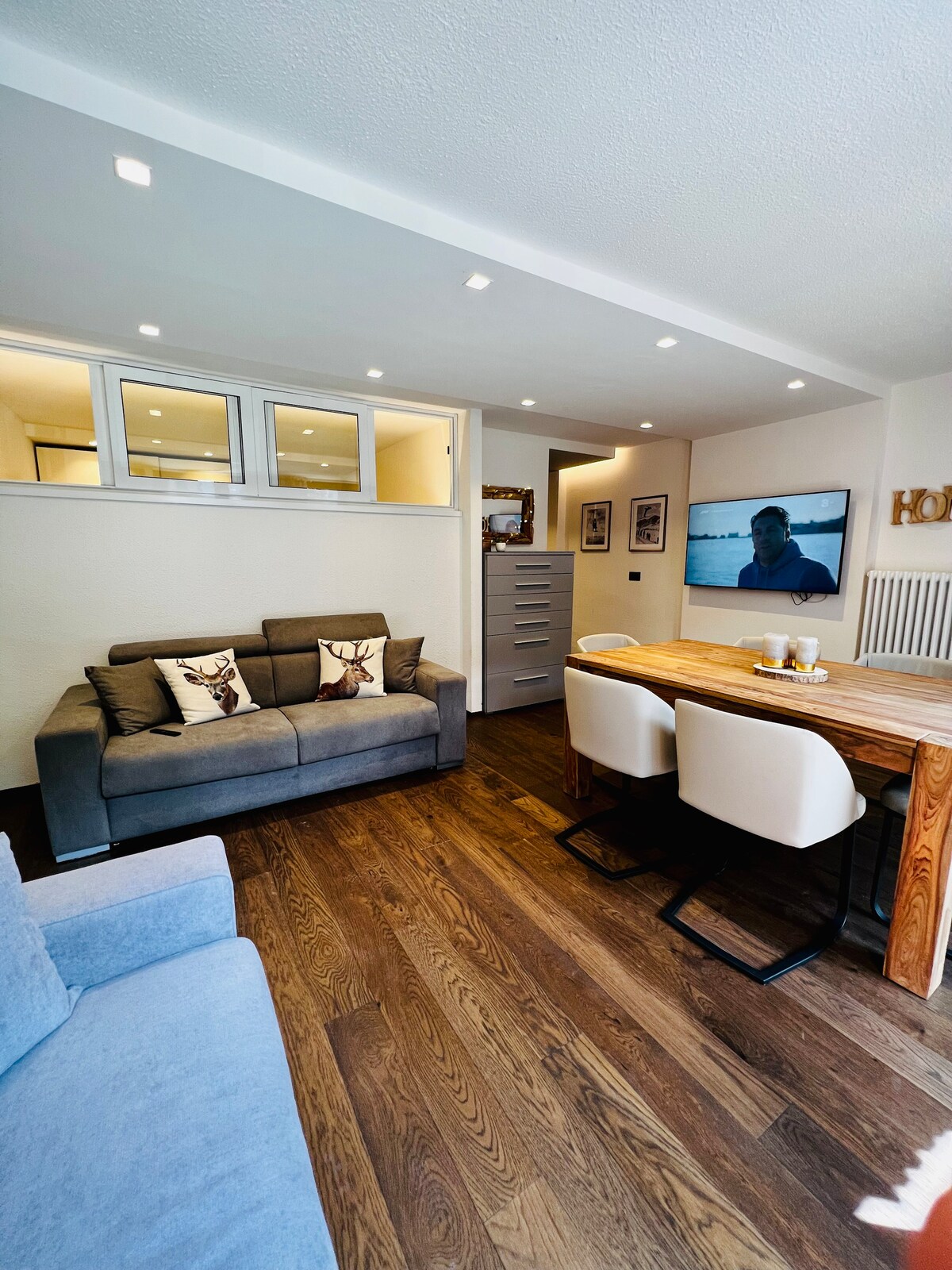 Un corto paseo desde el centro de la ciudad y los remontes de las pistas, bien comunicado por skibus para llegar a Campo Carlo, Grostè. En la plaza frente a la residencia hay el bar Sissi, un mercado, un alquiler de esquí/bicicletas eléctricas. El apartamento está equipado con un garaje para coches y una caja de esquí climatizada. En la residencia también hay áreas comunes para leer y conversar y una sala de juegos con ping-pong Ropa de cama incluida (sábanas, toallas). Impuesto turístico 1 €/ps/día a cobrar en el check-in