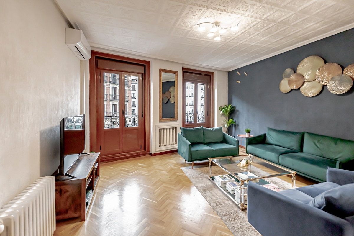 EL CALENDARIO SE ABRE CON 3 MESES DE ANTELACION. Apartamento con ocho balcones que se asoman a la calle beneficiándose de abundante luz natural, con exquisita decoración. Está completamente equipado con todas las comodidades. Situado en uno de los barrios más vibrantes de Madrid, a poca distancia de Gran Vía, la calle más emblemática y concurrida de la ciudad y en el corazón del barrio bohemio de Malasaña, a menudo comparado con el barrio neoyorquino de Williamsburg. Pleno centro de Madrid.