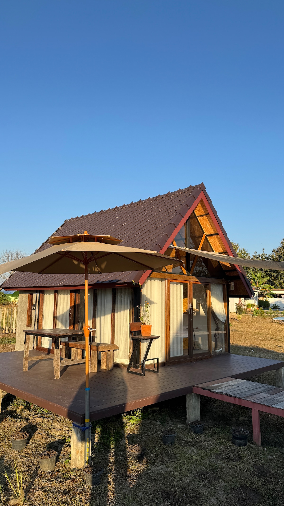 Acogedora casa con 1 dormitorio y 1 baño con balcón privado. 1 de las 6 casas en Nitan Village Chiang Dao. A solo 5 minutos a pie de la ciudad de Chiang Dao. Amplio terreno donde podrás relajarte y descansar en la naturaleza. Disfruta de las impresionantes vistas de la montaña Chiang Dao, pero a pocos minutos a pie se encuentra el centro de esta pequeña ciudad donde puedes disfrutar de cafeterías, comida callejera y restaurantes locales.
