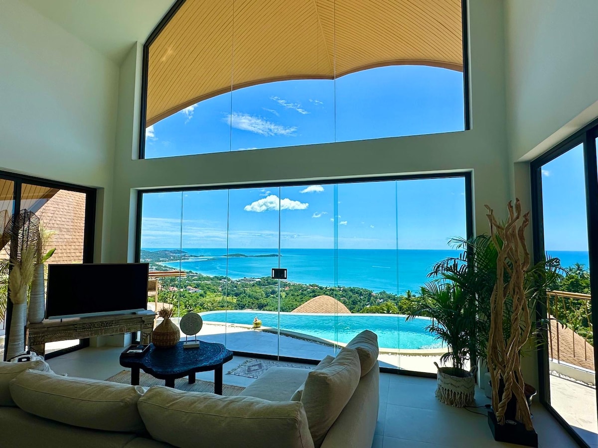 Nouvelle villa d'architecte , à quelques minutes du centre ville de Lamai, des plages et des restaurants. Vous apprécierez sa vue époustouflante sur le lagon de toutes les chambres et son équipement moderne. Ce logement est parfait pour tous ceux qui veulent se détendre avec une piscine à débordement xxl et ceci dans la plus stricte intimité .
