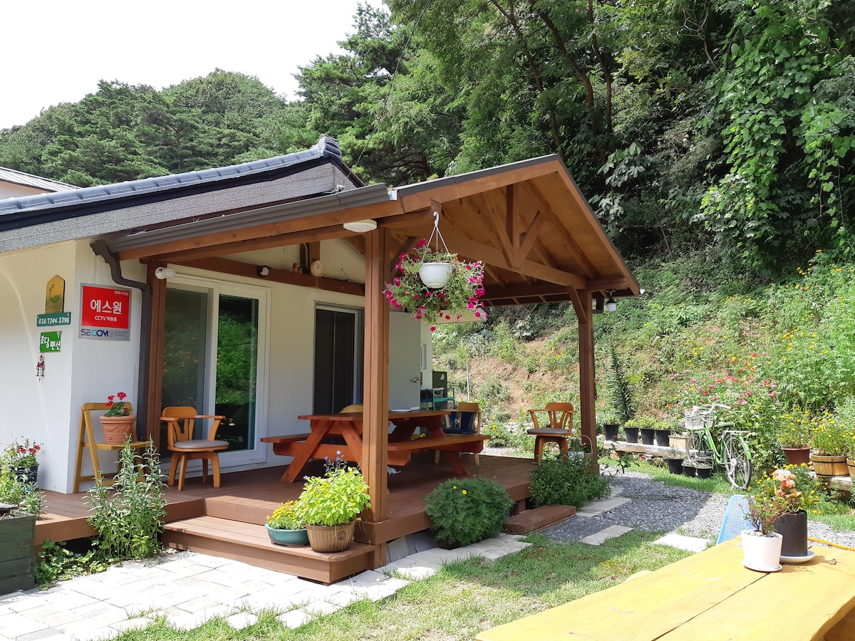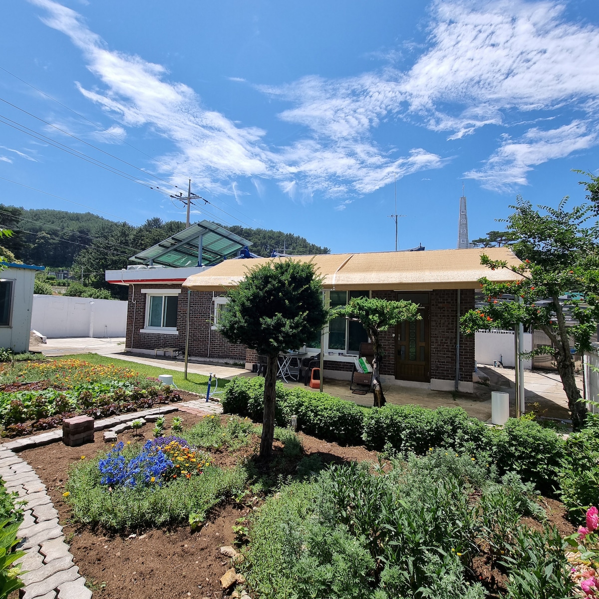 Este es «Pyeongneungga», registrado como *Traditional Hanok Bed and Breakfast No. 1* en la ciudad de Donghae. ¡Este hanok es una casa hanok que ha estado con nosotros durante 100 años! Es un lugar donde puedes correr por el patio a última hora de la tarde, y por la noche, puedes encender un fuego en el horno, asar caballa y comer mientras miras las estrellas en el cielo. Cuando era niño, cogí la mano de mi madre y fui a la casa de campo de mi abuela. Ven aquí y comparte una sensación cálida~ Durante el verano, compartimos suficientes verduras en el jardín. * Atracciones turísticas y servicios cercanos * 1) Desde el sendero y la ruta de senderismo (barra verde) 2) Se encuentra en un buen lugar para viajar a la ciudad de Donghae y a la ciudad de Samcheok. . Cueva Cheongok (a 5 minutos en auto) . Playa Hapyeong (a 5 minutos en auto) . Nongoldam-gil, Mukho Lighthouse (Skywalk), . Mercado de Mukho (a 10 minutos en coche) . Playa Mangsang (10 en auto) . Samcheok Beach, Chuam, Sol Beach (a 20 minutos en coche) . Valle de Mureung, Byeolyucheonji (a 30 minutos en auto) Si viajas solo lejos del centro de la ciudad, las parejas y las familias son bienvenidas * ^ ^ * Estoy disponible por mensaje de texto y teléfono si tienes alguna pregunta.