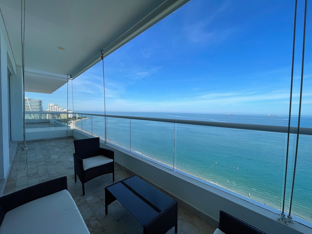 Apartamento moderno y tranquilo con vista al Mar Caribe, 1 habitación con cama doble, AA, TV Smart y baño con ducha de agua caliente. Sofa cama doble con vista al balcón, con AA, TV Smart y segundo baño con ducha. Internet fibra óptica alta velocidad, sala, comedor, escritorio, cocina, lavadora, parqueadero cubierto, ascensores, vigilancia 24 horas. Salida directa a la playa. A pie de gran variedad de excelentes restaurantes, supermercados, almacenes, agencias de viajes, bancos y vida nocturna.