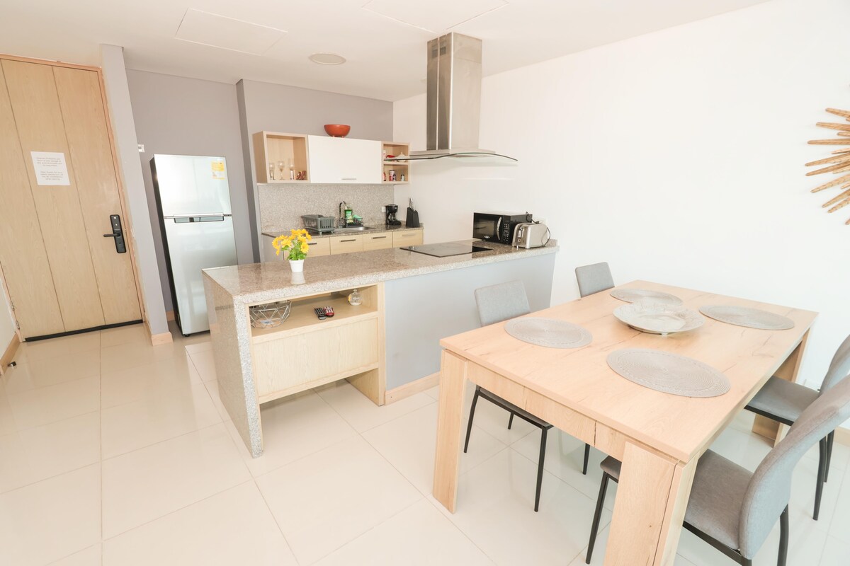 ☀️ 🏖️ 🌊 Oceanfront loft-style apartment on the 17th floor with unmatched sunset views. Enjoy a premium hotel-like experience with access to a semi-private beach and exclusive resort-style amenities: pools, jacuzzi, gym, BBQ, and coworking space. Prime location just 10 minutes from the airport. Ideal for sophisticated getaways or high-end relaxation. High-speed WiFi and a dedicated workspace, fully equipped kitchen, and a spacious private balcony with stunning ocean views.