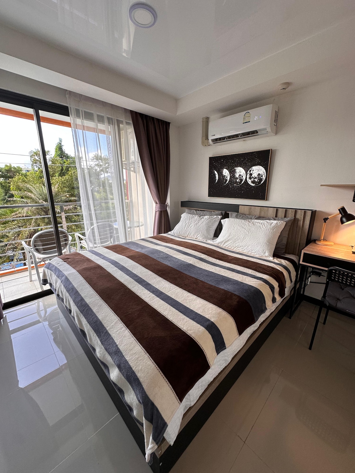 El departamento renovado con 32 metros cuadrados, de tamaño mediano en el séptimo piso, cuyo edificio está diseñado en una pequeña montaña. El lugar privado y tranquilo cerca de la playa de Naiyang Zona 📍destacada - Vista de Paronama desde la habitación. - Camina 5 minutos hasta la estación de parada de autobús hasta la ciudad. - Conduce por 5 minutos, camina 15 minutos hasta la playa y el parque nacional de Naiyang. - Conduce 7 minutos, camina 30 minutos hasta el aeropuerto internacional de Phuket. #Wi-Fi gratis #Totalmente equipado para la estadía # Estancia mensual, el precio excluye la carga eléctrica y el agua, limpieza gratuita 1 vez por semana