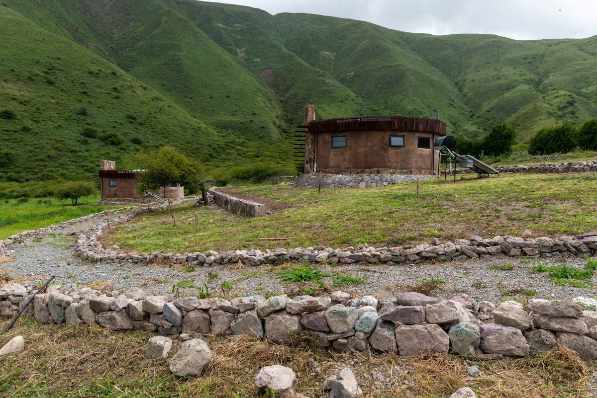 Rancho para 2 personas en un predio de 4000 mts cuadrados, con una increíble vista de las montañas de la Paleta del Pintor, en medio de un campo de cultivos y corral de llamas, construidos con un estilo andino, con materiales locales como adobe, caña y piedra, calefón solar y uso eficiente del agua.