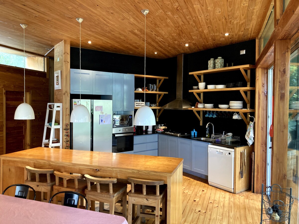 Disfruta de esta acogedora y amplia casa ubicada en los cerros de Pirque, rodeada de un entorno natural único y vistas panorámicas. Contamos con todas las comodidades para estar en pareja, ideal para los amantes de la cocina, el relajo, la tranquilidad y la conexión con la naturaleza. La casa cuenta con un gran espacio de living, comedor y cocina equipados. Relájate en un pozón de piedra, y disfruta de una tinaja caliente (de mayo a octubre) con una vista del valle.